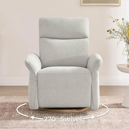 CHITA Power Recliner Chair, Electric Triple-Motor Swivel Glider Nursery Rocking Chair with Adjustable Power Headrest and Lumbar Support, GREENGARD Gold Certified, Solid Wood Base, Khaki Grey