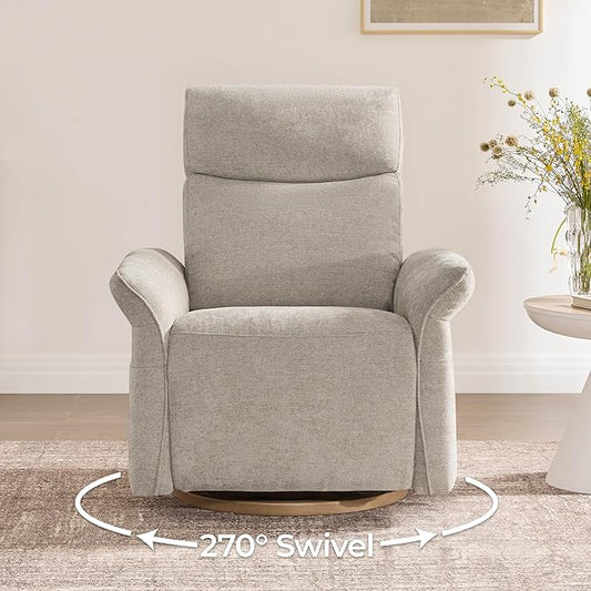 Oversized Swivel Rocker Recliner Chair, 26" Extra Wide Glider Nursery Chair with Adjustable Headrest, Chenille Power Recliner Rocking with Double Cushion, Cup Holder, Beige