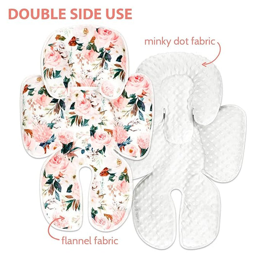 Infant Car Seat Insert, Enlarged Head Support for Baby Carseat, Reversible Newborn Insert with 3 Strap Covers, 2-in-1 Baby Car Seat Cushion for Stroller, Swing, Bouncer, Rocker - Pink Floral