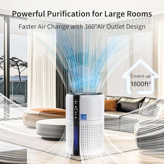 Air Purifiers for Home Large Room Covers up to 1800Ft², VisionAir 20dB Sleep Mode for Bedroom, with Real-Time AQI & PM2.5 Display, 360°Intake&Outlet Air Cleaner Pet-Friendly HEPA, HAP606, Light White