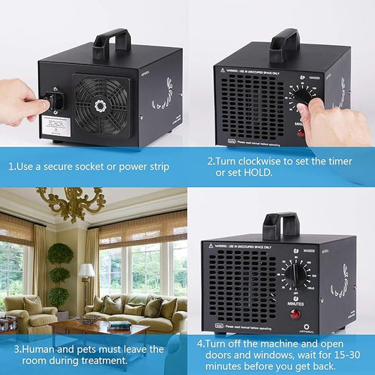 120,000mg/h 0zone Generator High Capacity Ozone Machine & Negative Ion Air Purifier for Home, Car, Pet Odor Removal, O3 Odor Eliminator up to 2,500 Sq. Ft.(Black)