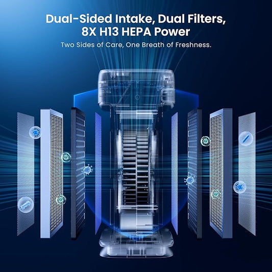 FRESHDEW Air Purifier for Home Up to 2300ft² with H14 True HEPA & Double-Sided Intake | Washable Pre-Filter & Air Quality Sensor | 22dB Ultra Quiet for Bedroom | Allergen/Dust/Smoke/Pet Dander
