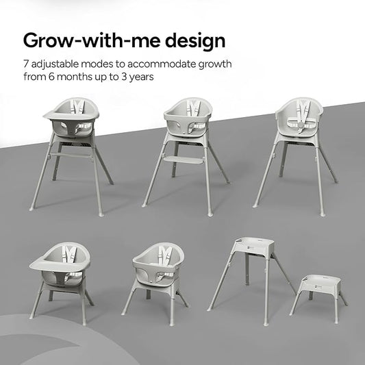 Mompush Olli 7-in-1 Convertible High Chair for Babies and Toddlers – Adjustable Height & Footrest, Dishwasher-Safe Tray, Compact Foldable Design for Easy Storage & Travel, Lightweight Yet Durable