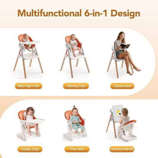 8 in 1 Highchair, Convertible Wooden Baby High Chair with Tray, Adjustable High Chair for Babies and Toddlers, Easy to Clean, Grow with Family|Booster|Learning Table|High Stool