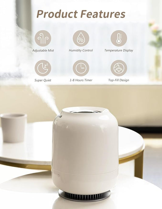 Fontaines Luxury Top-Fill Cool Mist Humidifier - 360° Ultra-Fine Spray, Whisper-Quiet Operation, Dishwasher-Safe Tank, Nightlight & Auto Shut-Off, Easy to Clean for Home, Bedroom, Baby Nursery