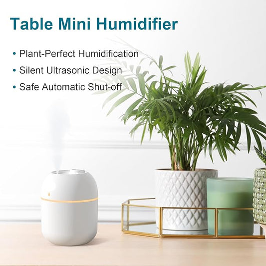 Portable Mini Humidifier for Desk Bedroom Indoor Plant, 280 ml Humidifier for Office Small Room, USB Powered Quiet Cool Mist Humidification Night Light (White)