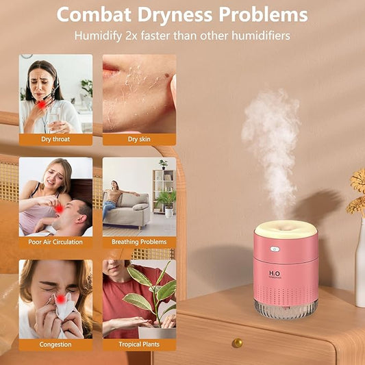 Portable Mini Humidifier, Auto Shut-Off, 2 Mist Modes, Quite, Small Humidifiers for Bedroom Travel Office Desk Plants (Pink)
