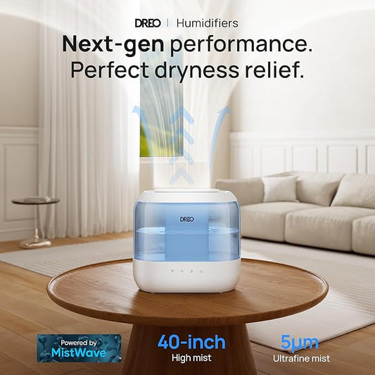 Dreo Humidifiers for Bedroom, 3L Top Fill 30H & 26dB Quiet Runtime for Large Room, Cool Mist Ultrasonic Humidifier with Humidity Sensor, Night Light for Home, Baby, Nursery, Plants, 360° Nozzle, White