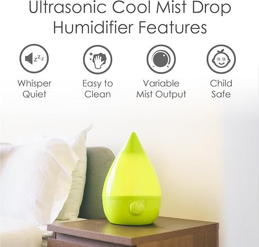 Crane Drop Ultrasonic Cool Mist Humidifier, 1 Gallon Teardrop with Auto Shutoff for Baby Nursery, Bedroom, Office, Plants, Green