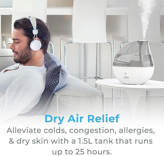 Pure Enrichment MistAire Silver Ultrasonic Cool Mist Humidifier for Bedroom, Office, Nursery & Indoor Plants - Lasts Up to 25 Hours, Whisper-Quiet Operation, Optional Night Light, & Auto Shut-Off