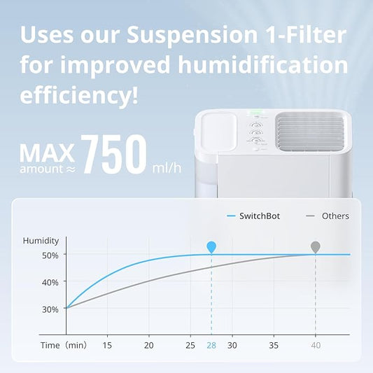 SwitchBot Smart Evaporative Humidifier for Bedroom 4.5L(1.2G), 750ml/h Rapid, Top Fill, Automatic Air Drying Filter, Ag+ Technology, Voice Control, App Alert (Hub 2 Required)