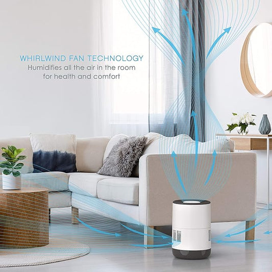 Pure Enrichment MistAire Eva - Mist-Free Evaporative Humidifier (2.8L) with Antibacterial Filter, 4-Speeds, Large Room Coverage up to 500 sq. ft., and Auto Shut-Off Timer
