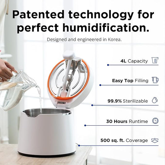 Carepod 31S Stainless Steel Humidifier for Large Room, Quiet & Safe for Baby, Only 3 Washable Parts & Easy to Clean, Ultrasonic Cool Mist Humidifiers for Bedroom, Filter-Free, Lasts 30Hrs (1Gal/4L)