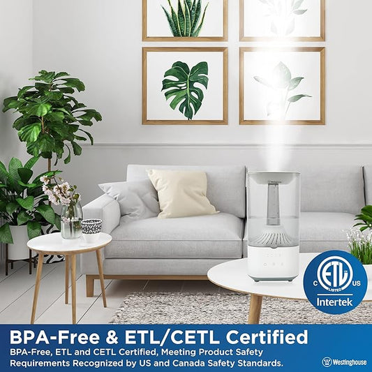 Westinghouse Ultrasonic Cool Mist Adjustable Humidifier, 4.5L Top Fill with LED Night Light and Touch Button Control