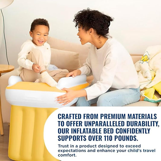 Portable Toddler Air Travel Bed with Raised Sides, Aero Bed for Kids, Ideal for Plane, Car, and Train Journeys, Includes Safety Belt and Manual Pump, Designed to Fit Airplane Seats.