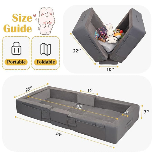 Portable Toddler Travel Bed|3-in-1 Foldable Floor Bed with Waterproof Handbag,High-Density Foam Sofa Chair for Kids,Collapsible Baby Camping Napmat,Indoor and Outdoor,Gray