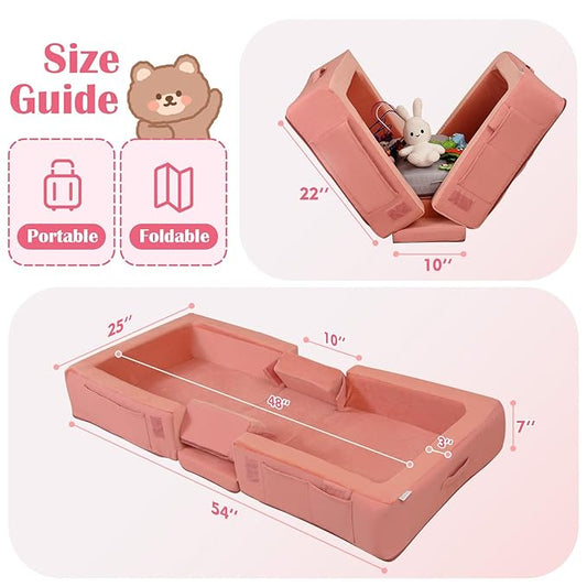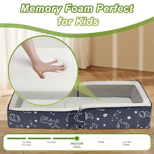 Portable Toddler Travel Bed, Foldable Kids Floor Bed for Home/Travel with Foam Mattres, Toddler Cot for Kids Aged 1-4, Velvet Fabric