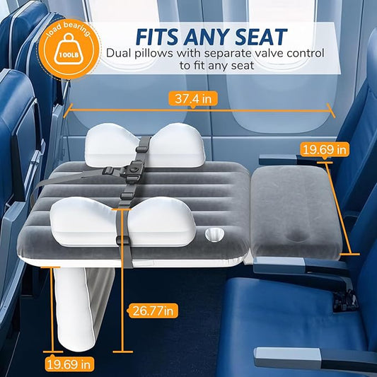 Inflatable Toddler Airplane Bed - Inflatable Kids Air Plane Bed Airplane Seat Extender for Kids with Safety Belt, Carry Bag, Fast-Pump & Storage Pocket - for Toddlers Flight Sleep