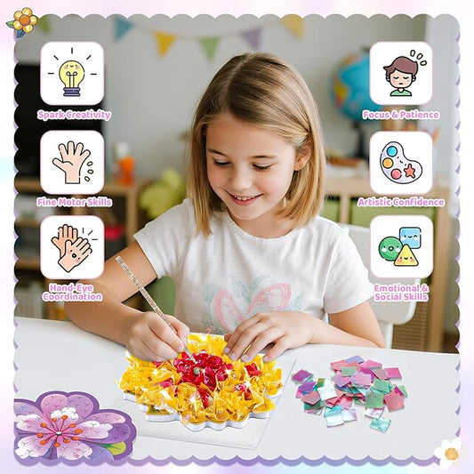 DIY Flower Bouquet Craft Kits, Poke in Art Arts and Crafts for Kids Girls Boys 4 5 6 7 8 9 10 11 12 Years Old Great Birthday Christmas Gifts 6 Flowers with LED Lights
