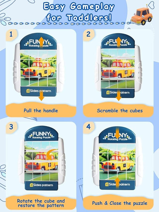 16-Piece Rotating Puzzles for Kids 4-6, Toddlers Puzzles 2-4, Road Trip, Airplane Activities Game, Travel Toys - Brain Teaser, Fine Motor Skills, Birthday Gifts Boys & Girls - Transportation