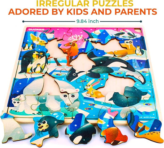 QUOKKA Wooden Polar Puzzles for Kids Ages 3-5 – 28 Pieces Toddlers Kids Puzzles Ages 4-8 Year Olds – Wood Polar Animal Toys for Children Games for Boys and Girls 6-8 yo