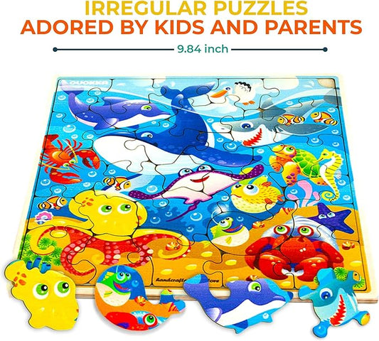 QUOKKA Wooden Ocean Puzzles for Kids Ages 3-5 – 28 Pieces Toddlers Kids Puzzles Ages 4-8 Year Olds – Wood Ocean Toys for Children Games for Boys and Girls 6-8 yo