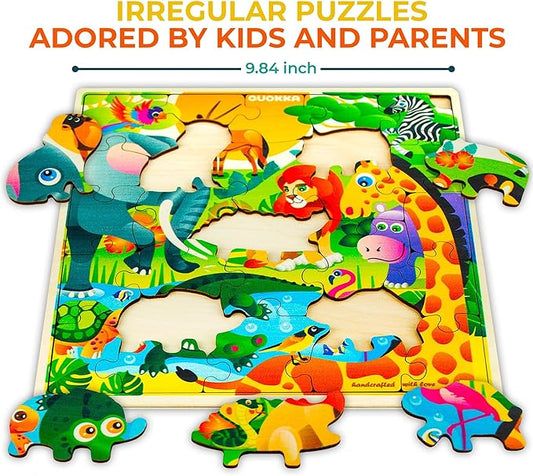QUOKKA Wooden Africa Puzzles for Kids Ages 3-5 – 28 Pieces Toddlers Kids Puzzles Ages 4-8 Year Olds – Wood Africa Toys for Children 6-8 yo