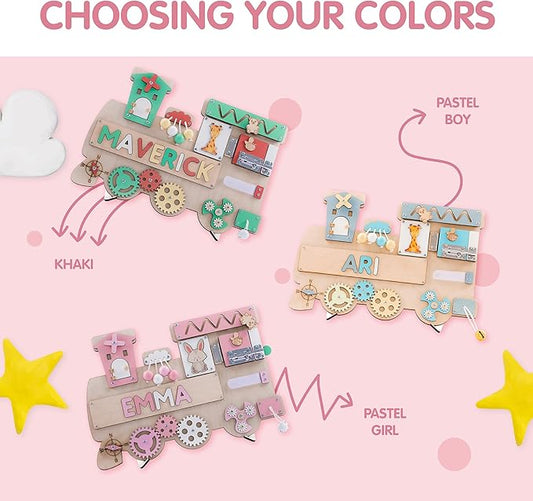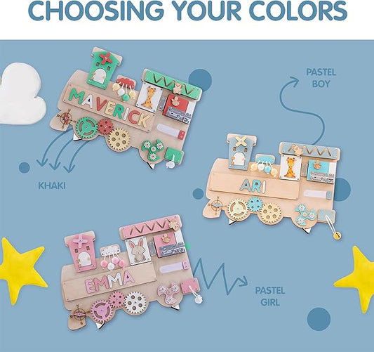 Customized Name Puzzle for Toddlers (Fixed I J Letters) Personalized Toddlers Busy Board, Baby Personalized Board for 1-5 Years Old, Birthday Gift, Montessori Toys (Pastel Boy)