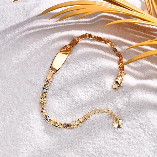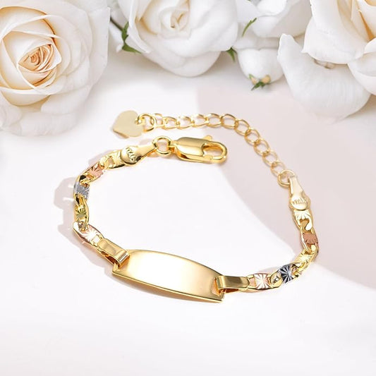 Personalized Baby ID Bracelet - 18K Gold Plated Tri-Color Chain Custom Name ID Plate Bar Bracelet for Children Toddler from Mom,Engraved Kid Name Customized Birthday,Back To School Gift for Daughter