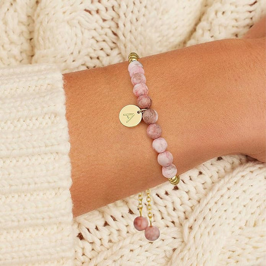 Ritach Initial Bracelets for Girls - Pink Zebra Natural Stone Bracelet Real Gold Plated Beaded Bracelets Adjustable Disc Initial Bracelets for Girls Kids Teen Girl Gifts