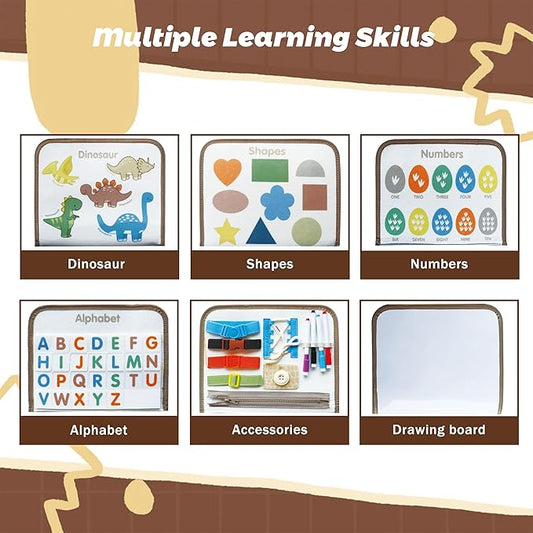 Toddler Busy Board Montessori Toys, Sensory Toys for 1 2 3 4 Year Old Boy, Busy Book Travel Educational Activities for Learning Fine Motor Skills Birthday Gifts (Blue Dinosaur/P10)