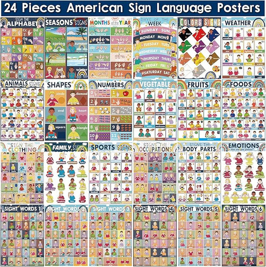 YIYDONG 24 Boho American Sign Language Posters for Kids, Sign Language for Babies & Toddlers, ABC Sign Language Flash Cards, ASL Posters for Classroom Decor