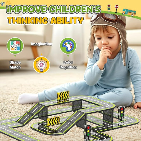 Magnetic Tiles Road Set, Magnetic Building Blocks for Toddler Kids, Montessori Educational Magnet Toys for Kids Ages 3+Year Old, STEM Creative Toy for Christmas Birthday Gifts
