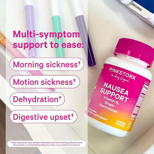 Pink Stork Vitamin B6, Ginger, Electrolyte Capsule - GLP1 Support - Natural Digestive Support with Peppermint, Potassium, Magnesium - Gentle on The Stomach - Motion Sickness Must Haves - 60ct