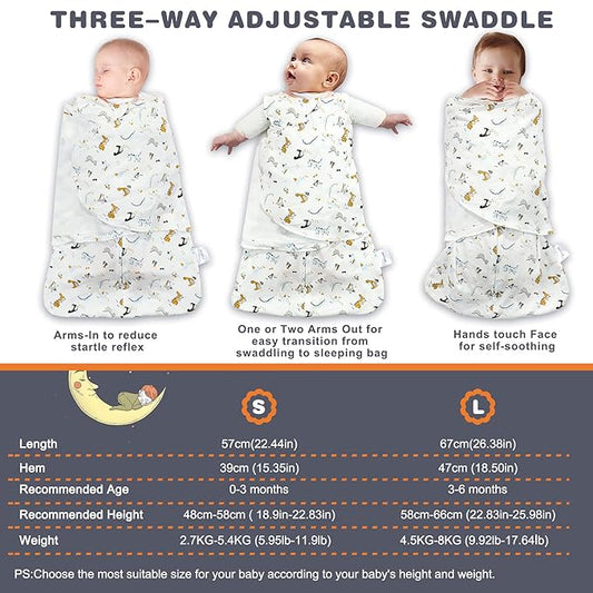 Swaddle-Blanket Baby Girl & Boy Swaddles Newborn Infant Transition 100% Cotton Wrap Blankets, 3-Way Adjustable Wearable Blanket, TOG 1.0 (Colorful Zoo, 3-6 Month)