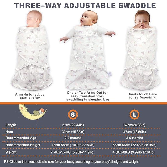 Swaddle-Blanket Baby Girl & Boy Swaddles Newborn Infant Transition 100% Cotton Wrap Blankets, 3-Way Adjustable Wearable Blanket, TOG 1.0 (Little Fairy, 3-6 Month)