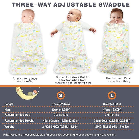 Swaddle-Blanket Baby Girl & Boy Swaddles Newborn Infant Transition 100% Cotton Wrap Blankets, 3-Way Adjustable Wearable Blanket, TOG 1.0 (Rainbow, 3-6 Month)