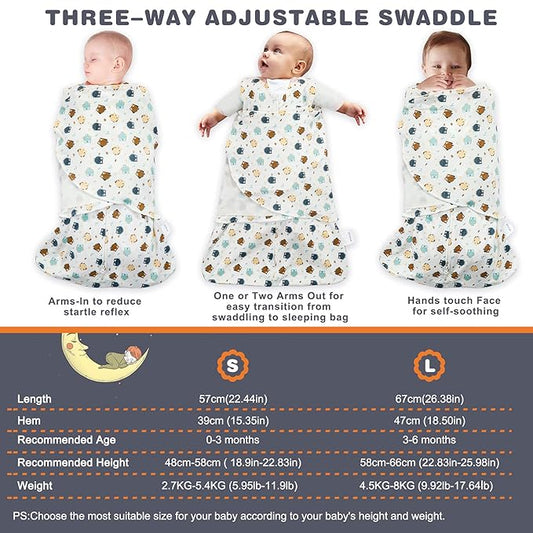 Swaddle-Blanket Baby Girl & Boy Swaddles Newborn Infant Transition 100% Cotton Wrap Blankets, 3-Way Adjustable Wearable Blanket, TOG 1.0 (Owl, 3-6 Month)