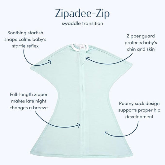 SleepingBaby Zipadee-Zip Transition Swaddle - Cozy Baby Swaddle Blanket with Zipper Convenience - Roomy Wearable Blanket for Easy Diaper Changes - Classic Mint, Small (4-8 Month)
