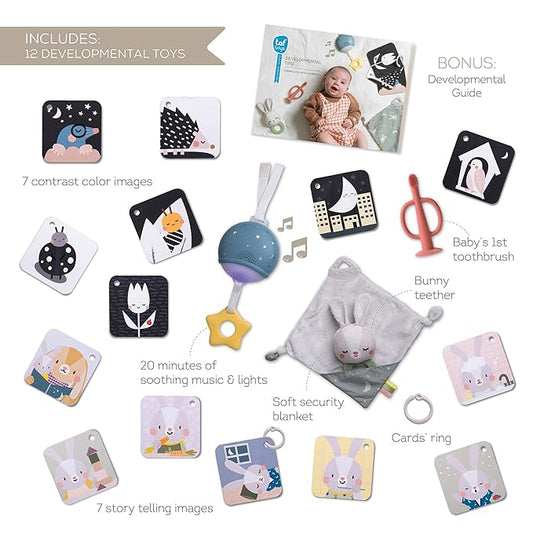 Taf Toys Newborn Bedtime Kit - Ultimate with 12 Activities for Smooth Bedtime Routine - Includes Music and Light Unit - Ideal for New Baby Boy or Girl