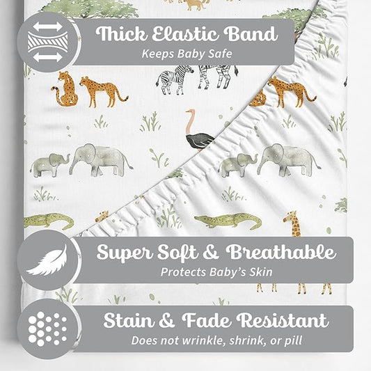 Baby Changing Pad Cover 2-Pack for Boys, Girls (Safari Adventure) - Premium Fitted Sheets Baby Diaper Changing Table Cover - Buttery Soft Cotton Blend