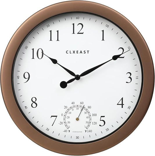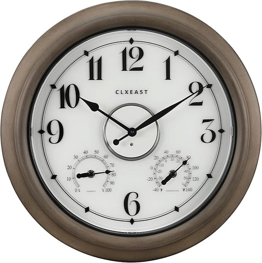 CLXEAST Indoor Outdoor Clocks Waterproof 18 Inch, Large Outdoor Clock with Temperature and Humidity Combo,Weatherproof,Bronze/Brown