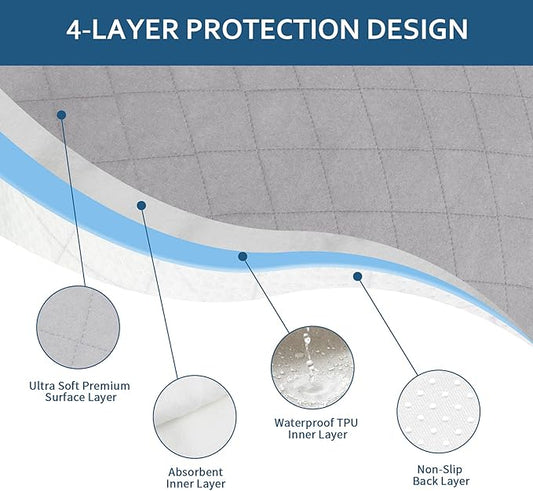 Waterproof Incontinence Chair Pads, 22" x 21" Wheelchair Reusable Seat Pads Cover, Washable Nursery Seat Protector, 4 Pack Gray