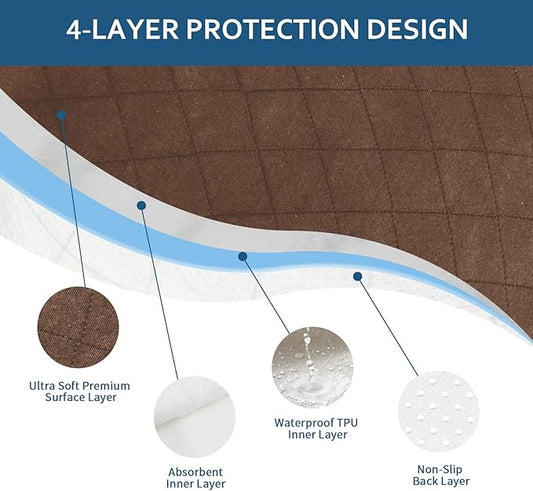 Waterproof Incontinence Chair Pads, 22" x 21" Wheelchair Reusable Seat Pads Cover, Washable Nursery Seat Protector, 4 Pack Brown