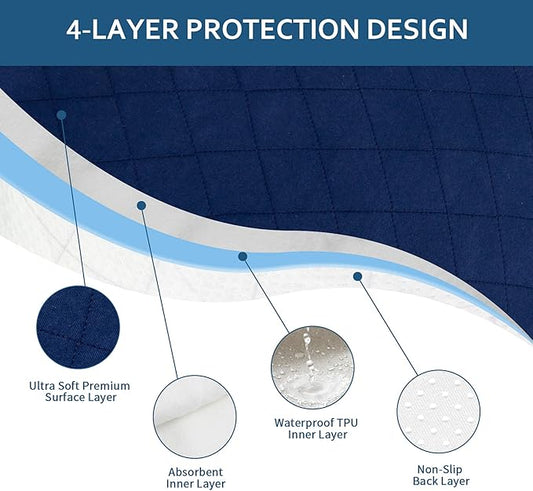 Waterproof Incontinence Chair Pads, 22" x 21" Wheelchair Reusable Seat Pads Cover, Washable Nursery Seat Protector, 4 Pack Navy