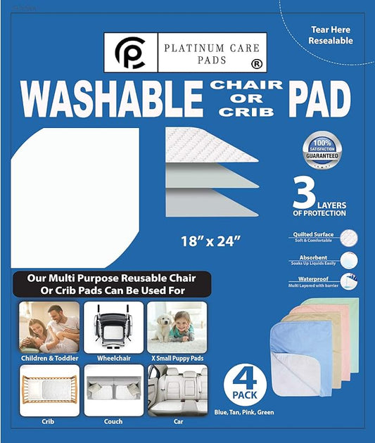 Platinum Care Pads™ Washable Bed Pads/Chair Pads for Incontinence - Size 18x24 - Pack of 4