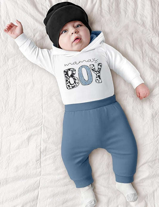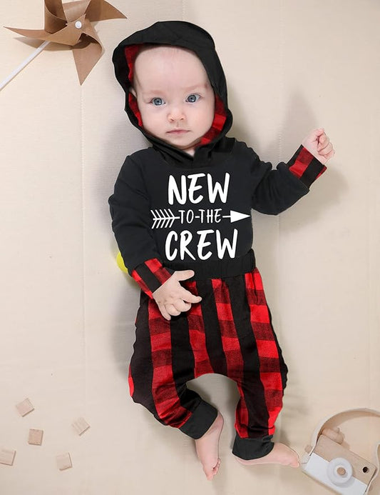 Fommy Newborn Baby Boy Clothes Plaid Letter Print Long Sleeve Hoodies + Long Pants 2PCS Fall Winter Outfits Set