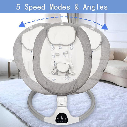 Baby Swing for Infants to Toddler Portable Babies Swing Timing Function 5 Swing Speeds Bluetooth Touch Screen Music Speaker with 10 Preset Lullabies 5-Point Carabiner (Light Grey)