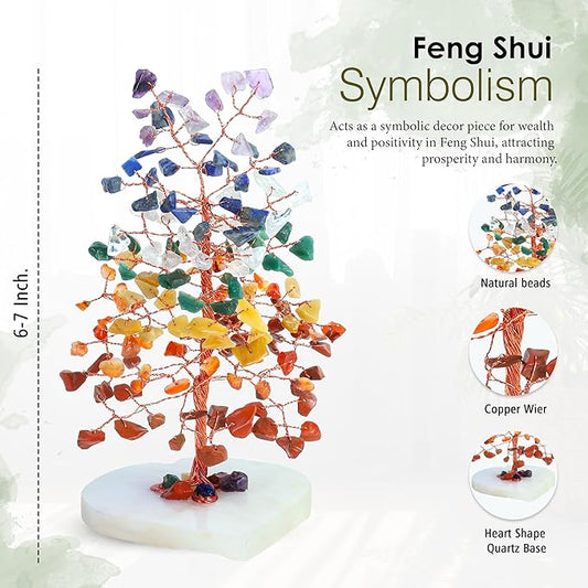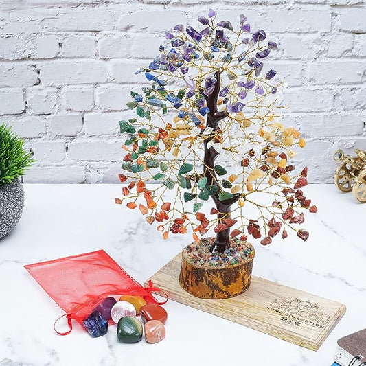 Crocon Seven Chakra Gemstone Tree Feng Shui Figurine Money Bonsai Good Luck Reiki Healing Crystals Balancing Decoration Ornament Sculpture Wealth Prosperity Table Room Decor Gift Size 10-12"