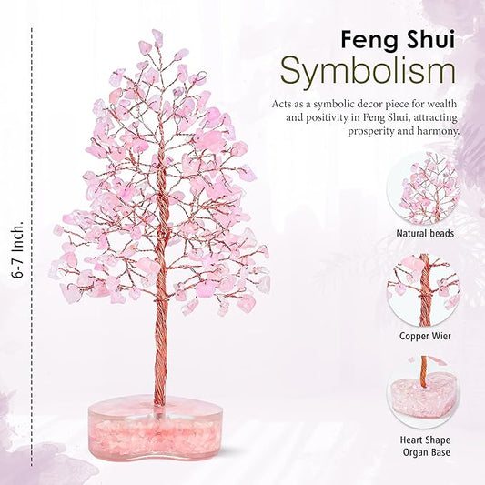 Rose Quartz Tree of Life, Handmade Gemstone Feng Shui Money Tree, Healing Crystal Decoration for Home, Positive Energy, Spiritual Gift
